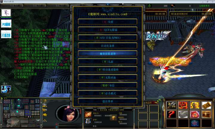 | 技能菜单【光环类技能】 | 自动化菜单【自动加钱木,提升英雄三围】 |