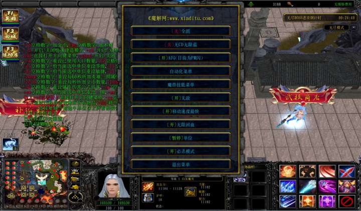 | 技能菜单【光环类技能】 | 自动化菜单【自动加钱木,提升英雄三围】 |
