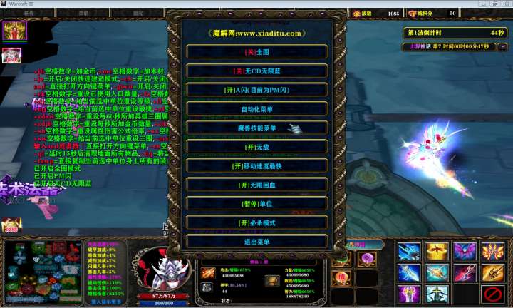 | 技能菜单【光环类技能】 | 自动化菜单【自动加钱木,提升英雄三围】 |
