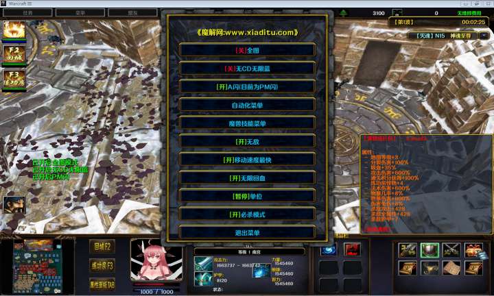 | 技能菜单【光环类技能】 | 自动化菜单【自动加钱木,提升英雄三围】 |