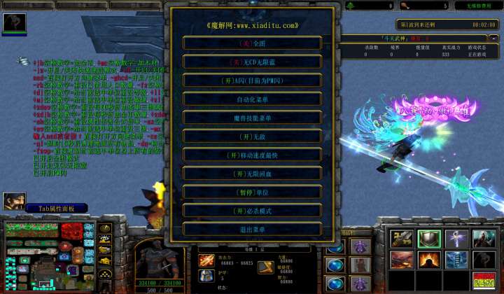 | 技能菜单【光环类技能】 | 自动化菜单【自动加钱木,提升英雄三围】 |