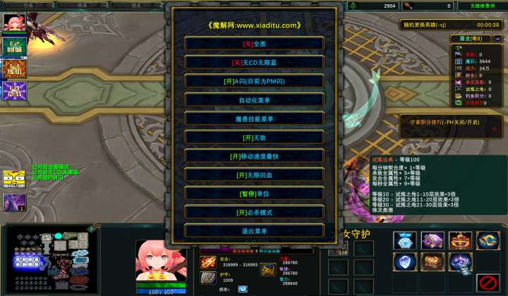 | 技能菜单【光环类技能】 | 自动化菜单【自动加钱木,提升英雄三围】 |