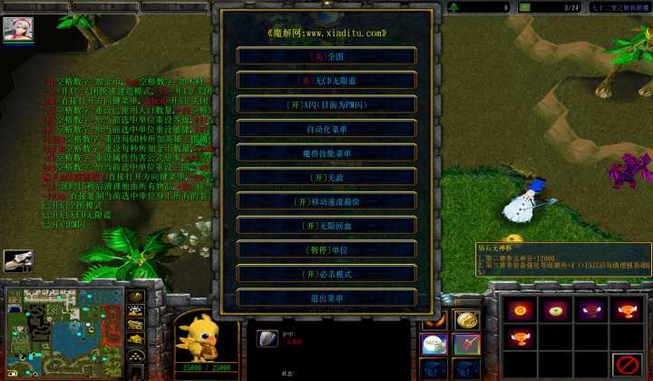 | 技能菜单【光环类技能】 | 自动化菜单【自动加钱木,提升英雄三围】 |