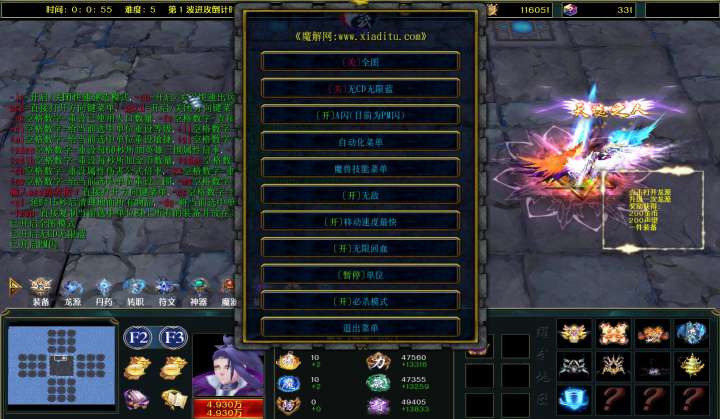 | 技能菜单【光环类技能】 | 自动化菜单【自动加钱木,提升英雄三围】 |