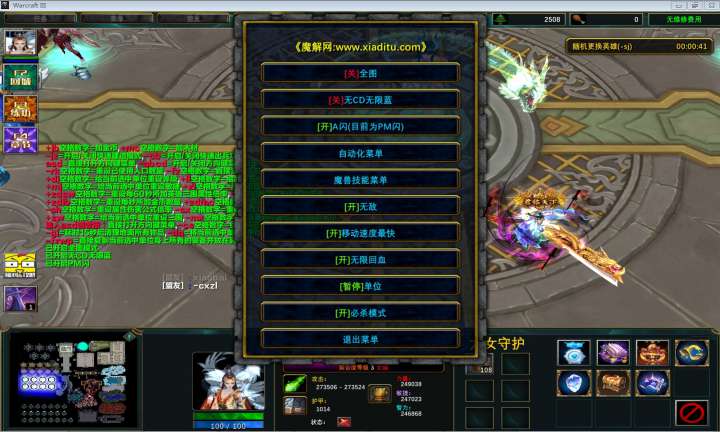 | 技能菜单【光环类技能】 | 自动化菜单【自动加钱木,提升英雄三围】 |