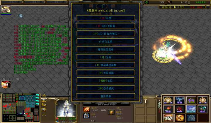 | 技能菜单【光环类技能】 | 自动化菜单【自动加钱木,提升英雄三围】 |