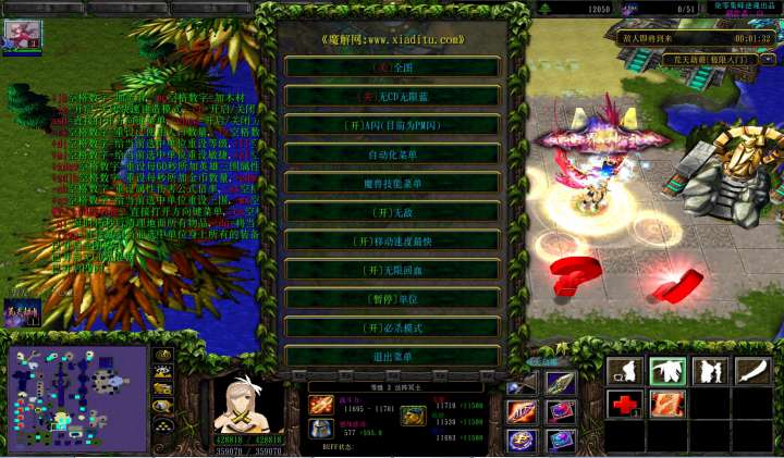 | 技能菜单【光环类技能】 | 自动化菜单【自动加钱木,提升英雄三围】 |