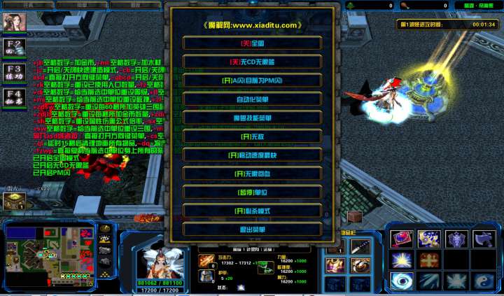 | 技能菜单【光环类技能】 | 自动化菜单【自动加钱木,提升英雄三围】 |