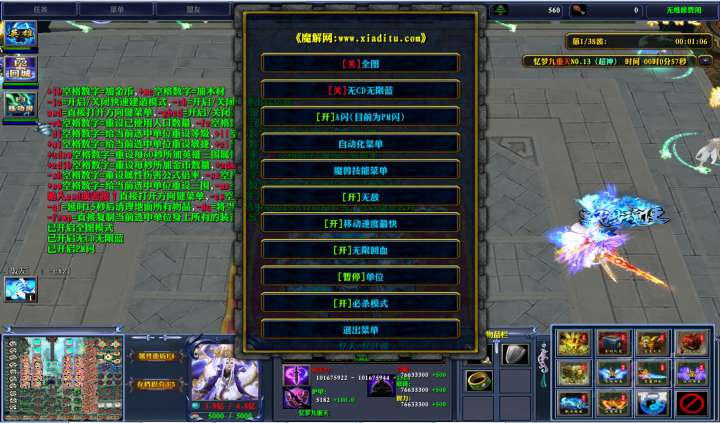 | 技能菜单【光环类技能】 | 自动化菜单【自动加钱木,提升英雄三围】 |