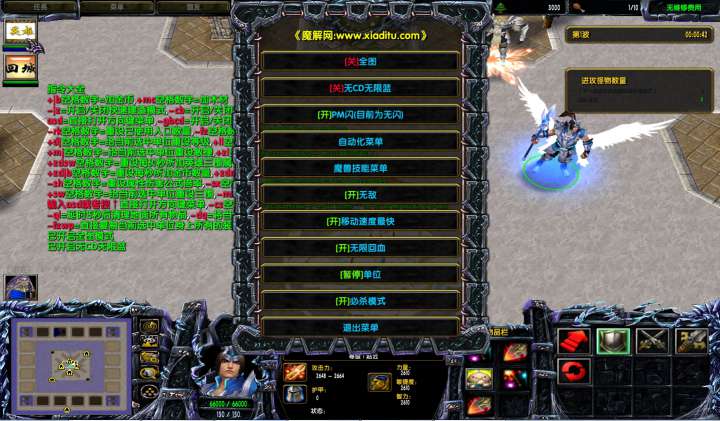 | 技能菜单【光环类技能】 | 自动化菜单【自动加钱木,提升英雄三围】 |