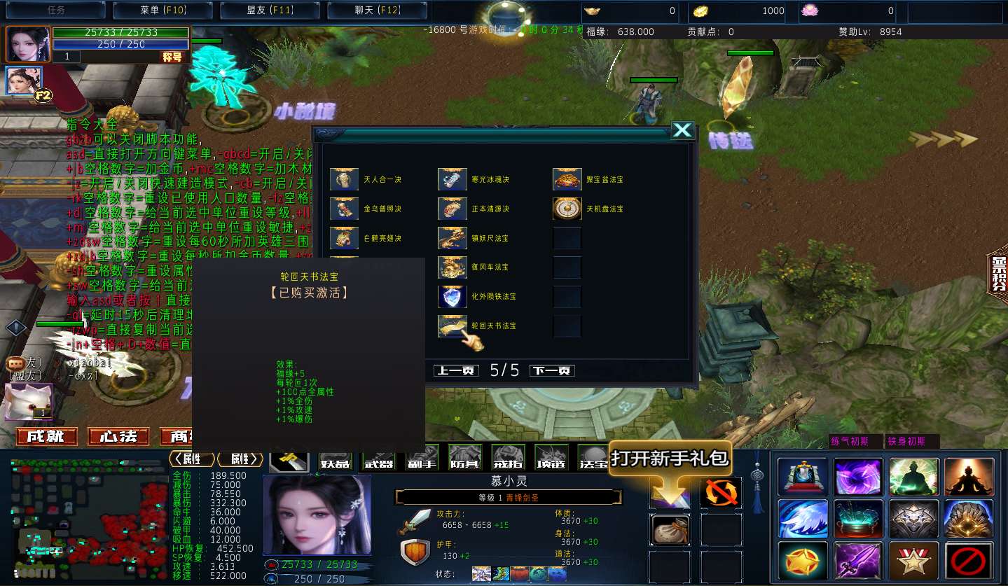 | 技能菜单【光环类技能】 | 自动化菜单【自动加钱木,提升英雄三围】 |