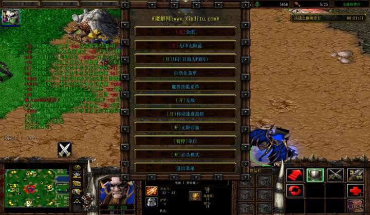 | 技能菜单【光环类技能】 | 自动化菜单【自动加钱木,提升英雄三围】 |