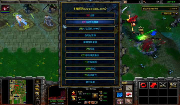 | 技能菜单【光环类技能】 | 自动化菜单【自动加钱木,提升英雄三围】 |