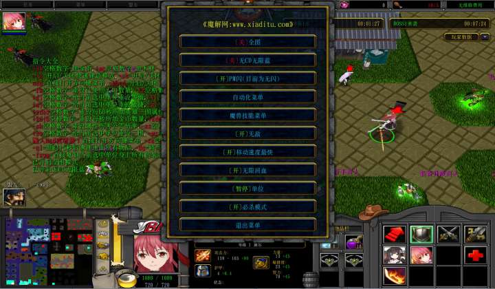 | 技能菜单【光环类技能】 | 自动化菜单【自动加钱木,提升英雄三围】 |