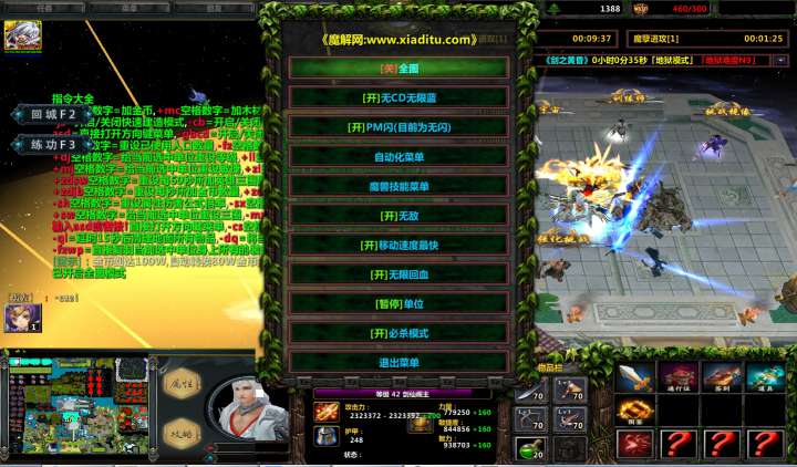 | 技能菜单【光环类技能】 | 自动化菜单【自动加钱木,提升英雄三围】 |