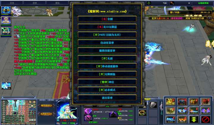 | 技能菜单【光环类技能】 | 自动化菜单【自动加钱木,提升英雄三围】 |