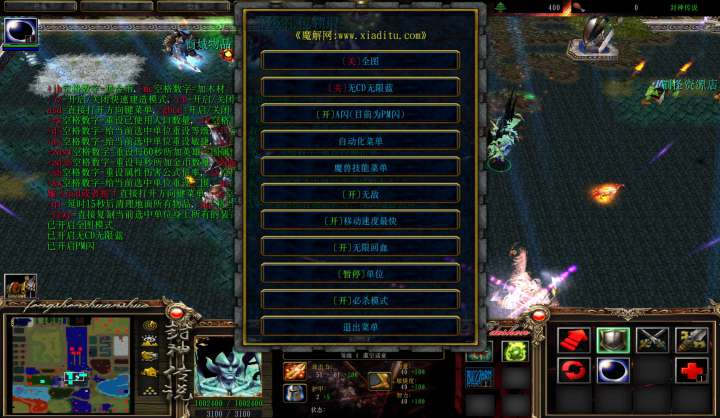 | 技能菜单【光环类技能】 | 自动化菜单【自动加钱木,提升英雄三围】 |