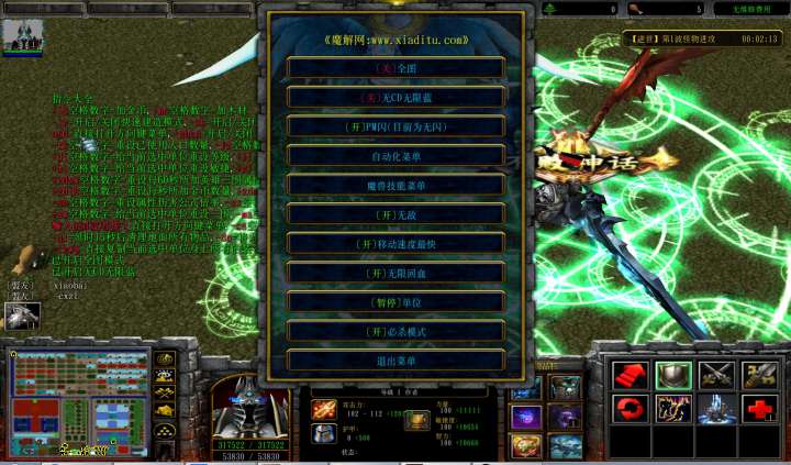 | 技能菜单【光环类技能】 | 自动化菜单【自动加钱木,提升英雄三围】 |