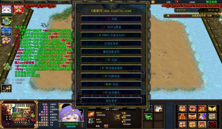 | 技能菜单【光环类技能】 | 自动化菜单【自动加钱木,提升英雄三围】 |