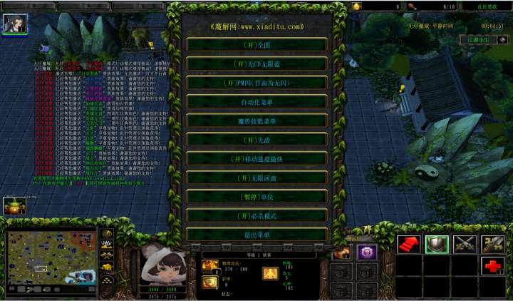 | 技能菜单【光环类技能】 | 自动化菜单【自动加钱木,提升英雄三围】 |