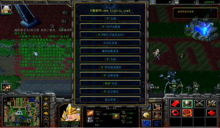 | 技能菜单【光环类技能】 | 自动化菜单【自动加钱木,提升英雄三围】 |