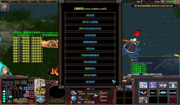 | 技能菜单【光环类技能】 | 自动化菜单【自动加钱木,提升英雄三围】 |