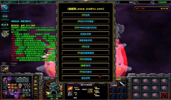 | 技能菜单【光环类技能】 | 自动化菜单【自动加钱木,提升英雄三围】 |