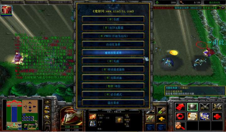 | 技能菜单【光环类技能】 | 自动化菜单【自动加钱木,提升英雄三围】 |