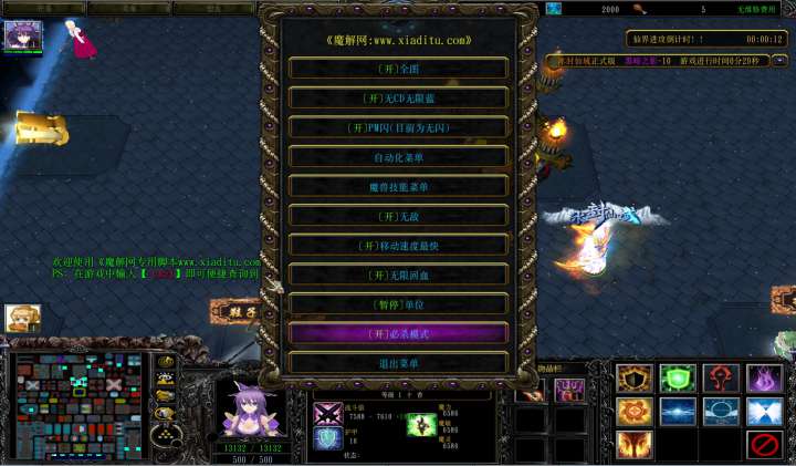 | 技能菜单【光环类技能】 | 自动化菜单【自动加钱木,提升英雄三围】 |