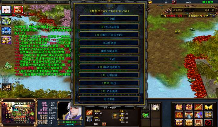 | 技能菜单【光环类技能】 | 自动化菜单【自动加钱木,提升英雄三围】 |