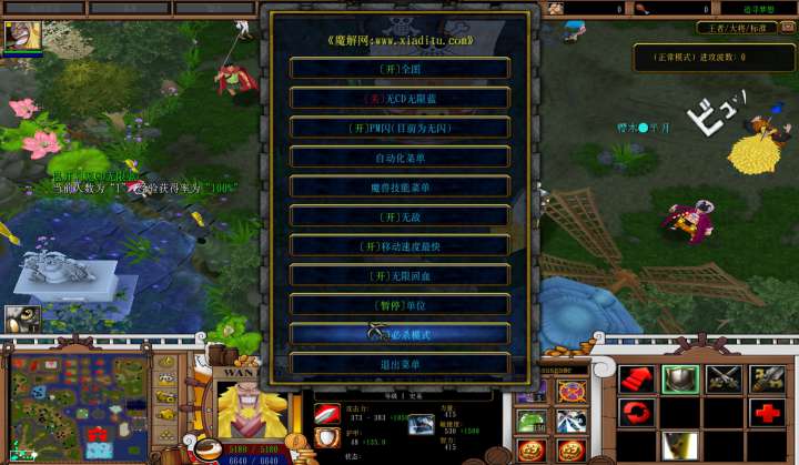 | 技能菜单【光环类技能】 | 自动化菜单【自动加钱木,提升英雄三围】 |
