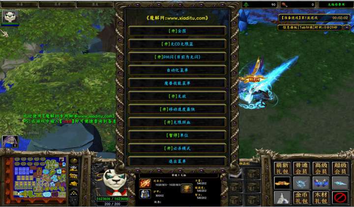 | 技能菜单【光环类技能】 | 自动化菜单【自动加钱木,提升英雄三围】 |