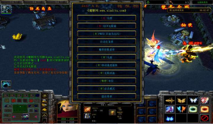 | 技能菜单【光环类技能】 | 自动化菜单【自动加钱木,提升英雄三围】 |