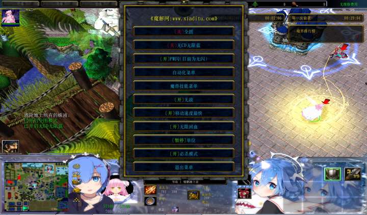 | 技能菜单【光环类技能】 | 自动化菜单【自动加钱木,提升英雄三围】 |