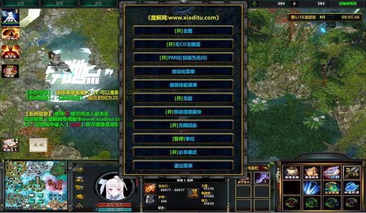 | 技能菜单【光环类技能】 | 自动化菜单【自动加钱木,提升英雄三围】 |