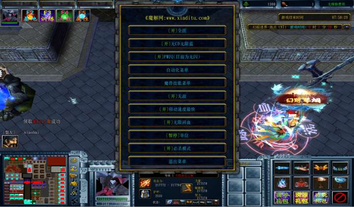 | 技能菜单【光环类技能】 | 自动化菜单【自动加钱木,提升英雄三围】 |