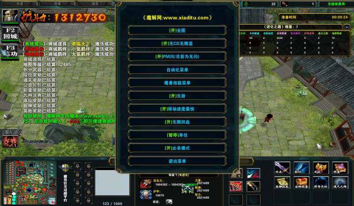 | 技能菜单【光环类技能】 | 自动化菜单【自动加钱木,提升英雄三围】 |