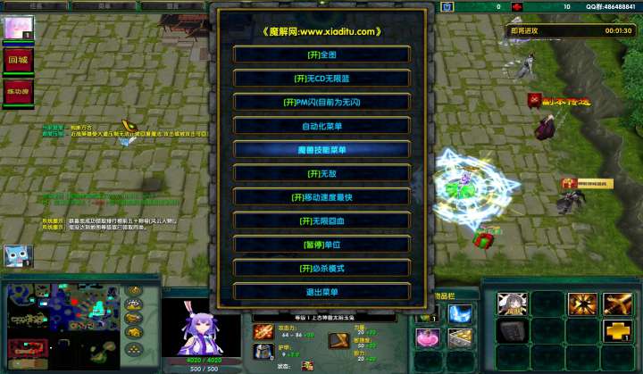 | 技能菜单【光环类技能】 | 自动化菜单【自动加钱木,提升英雄三围】 |