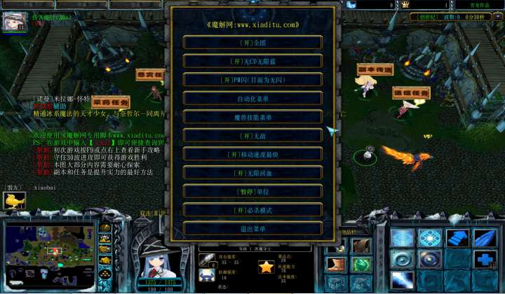 | 技能菜单【光环类技能】 | 自动化菜单【自动加钱木,提升英雄三围】 |