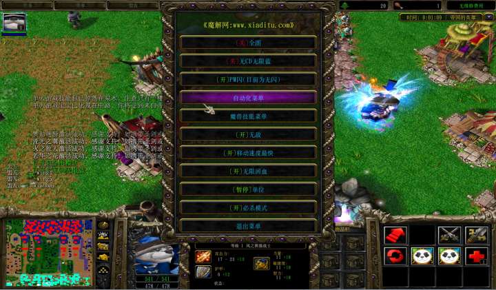 | 技能菜单【光环类技能】 | 自动化菜单【自动加钱木,提升英雄三围】 |