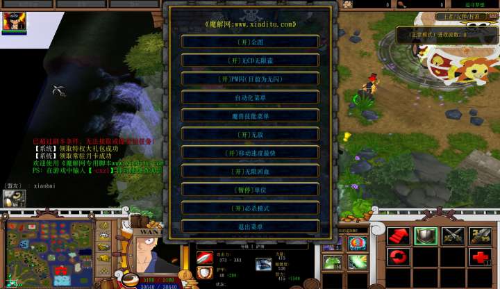 | 技能菜单【光环类技能】 | 自动化菜单【自动加钱木,提升英雄三围】 |
