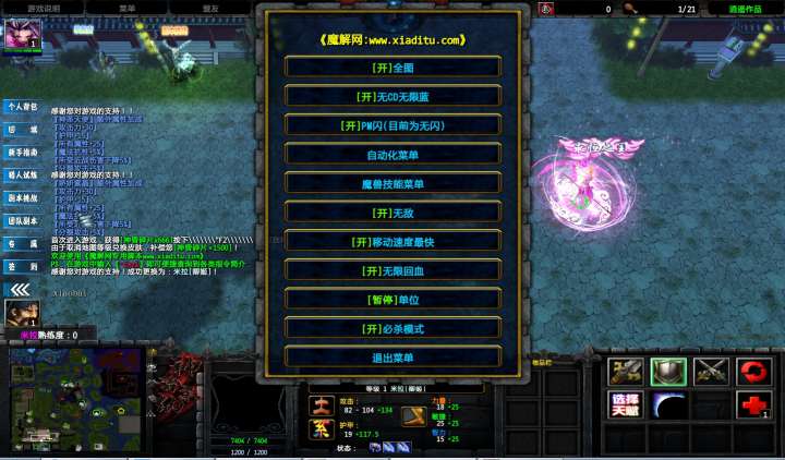 | 技能菜单【光环类技能】 | 自动化菜单【自动加钱木,提升英雄三围】 |