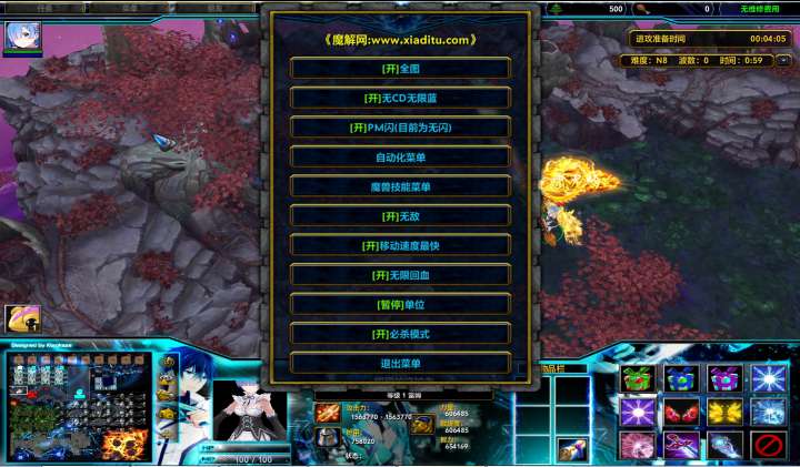 | 技能菜单【光环类技能】 | 自动化菜单【自动加钱木,提升英雄三围】 |