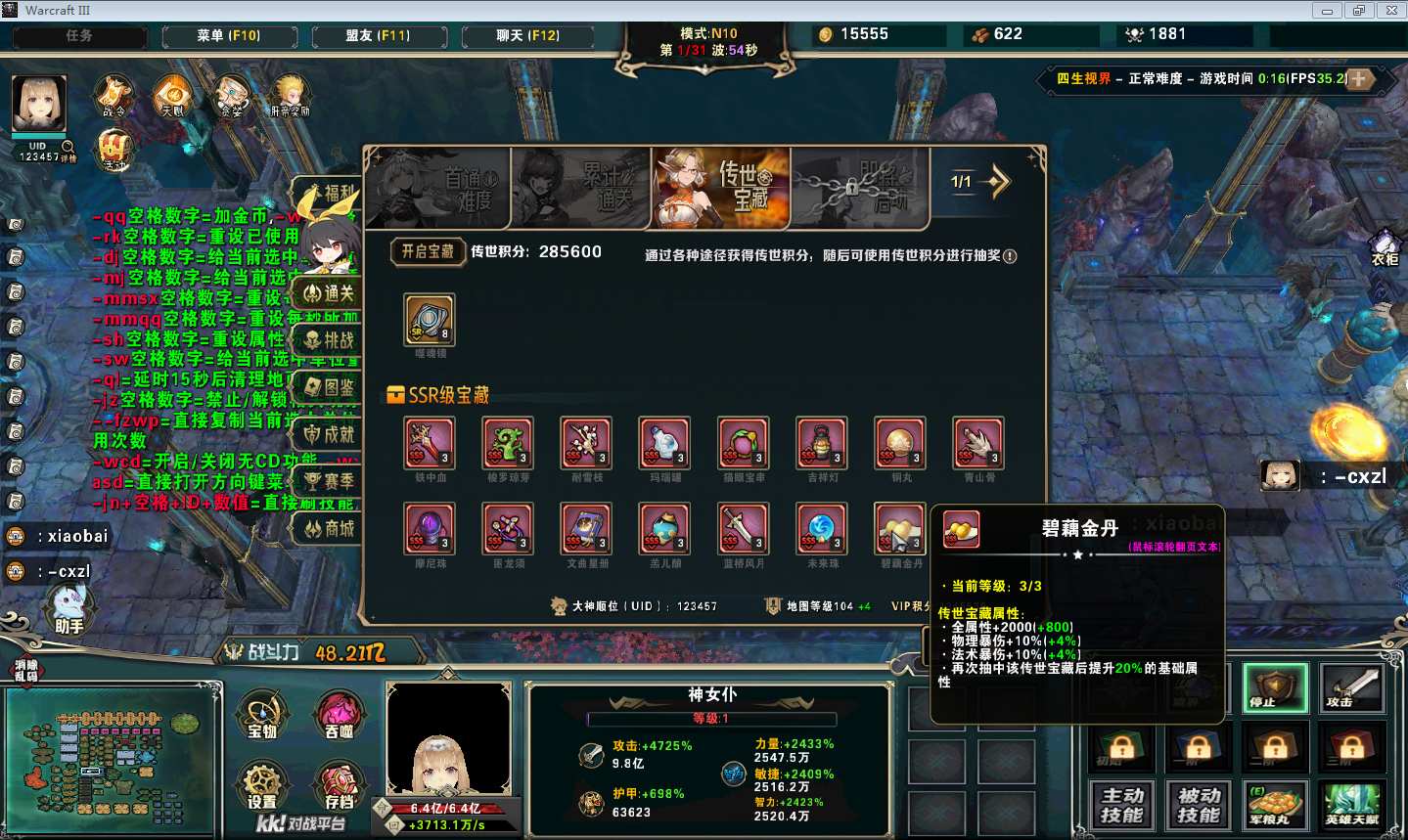 地图名字:四生视界1.0.51地图下载+全商城特权+全存档解锁+隐藏英雄+无CD+指令功能
