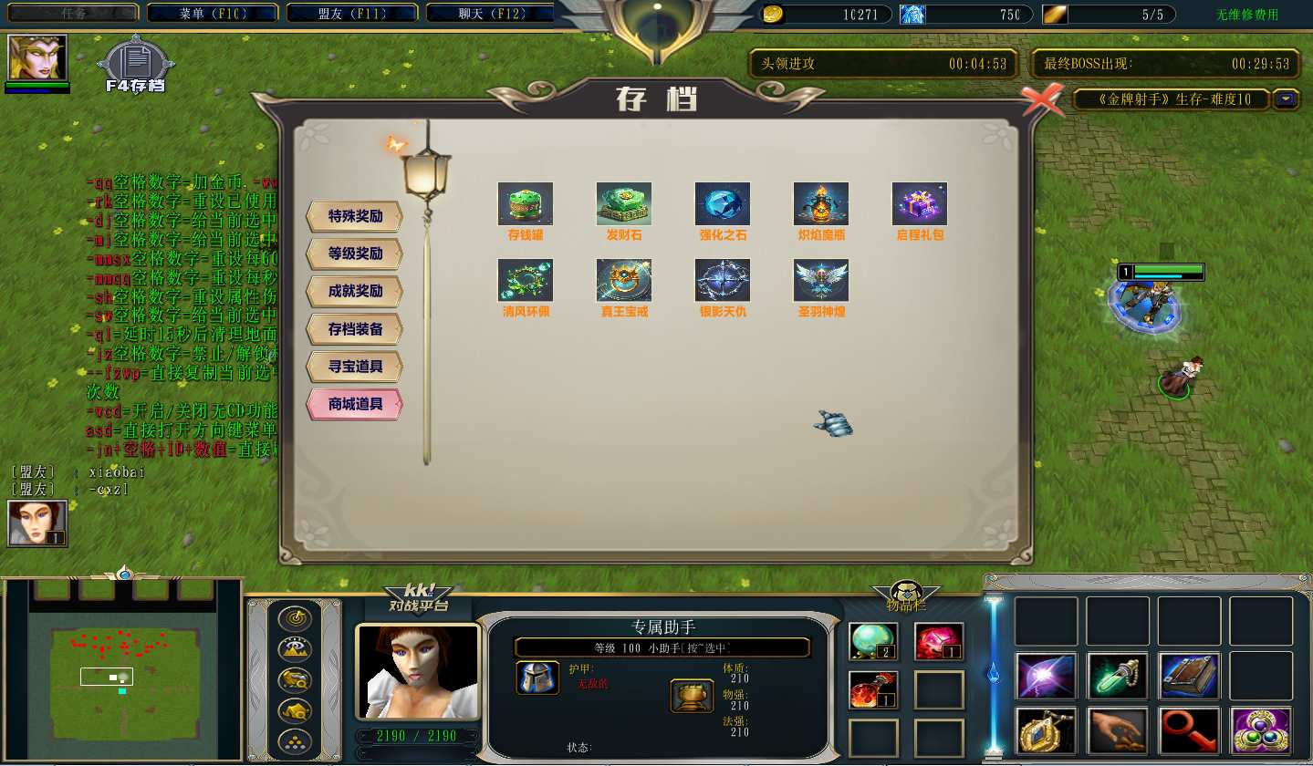| 技能菜单【光环类技能】 | 自动化菜单【自动加钱木,提升英雄三围】 |