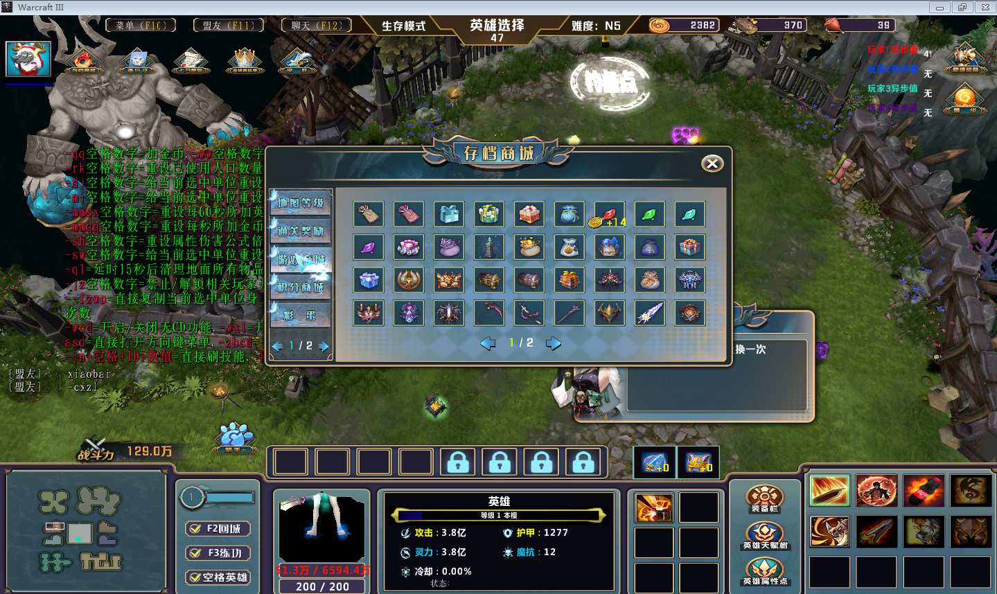 | 技能菜单【光环类技能】 | 自动化菜单【自动加钱木,提升英雄三围】 |