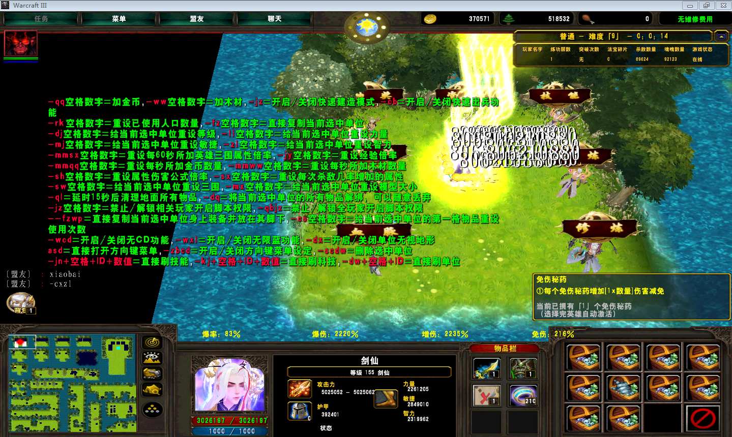 | 技能菜单【光环类技能】 | 自动化菜单【自动加钱木,提升英雄三围】 |