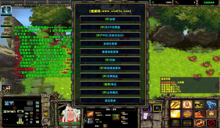 | 技能菜单【光环类技能】 | 自动化菜单【自动加钱木,提升英雄三围】 |