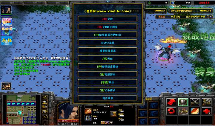 | 技能菜单【光环类技能】 | 自动化菜单【自动加钱木,提升英雄三围】 |