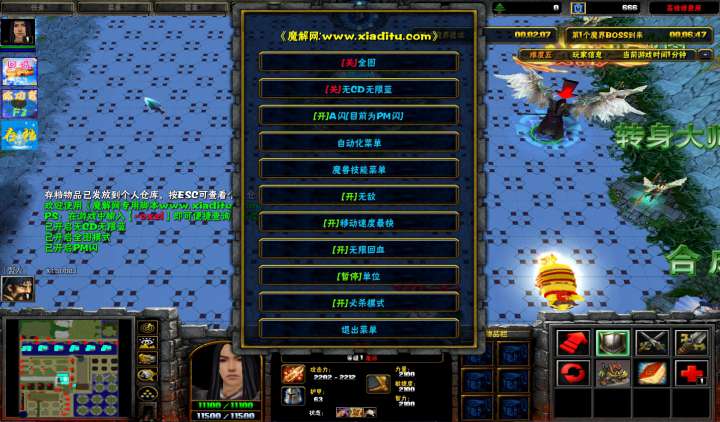 | 技能菜单【光环类技能】 | 自动化菜单【自动加钱木,提升英雄三围】 |